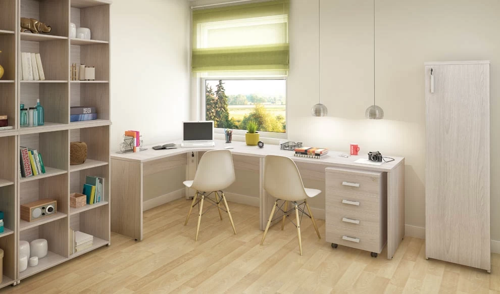 Acabamento Tampo confeccionado em BP 25 com fita de 2mm; Pés confeccionados em BP 25mm com fita de borda de 0.5mm; Saias confeccionadas em BP 15mm com fita de borda de 0.5mm; Pé canto confeccionado em aço com nivelador; Pés com niveladores de altura